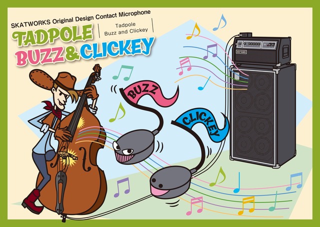 <Spec of TADPOLE CLICKEY> How to use: This kit is designed to receive a slap sound. Mount it to the back of the fingerboard with double-sided tape. Item Included: /Main unit <cable length 80cm> one set (with φ6.35 ¼-inch mono phone jack) /5 cable clips with adhesive /Acrylic double-sided tape 2 pcs (+ 1 spare) /One set of jack mount (mount to the tailpiece) Please see our website for product concepts. https://skatworks.com/tadpole.html
